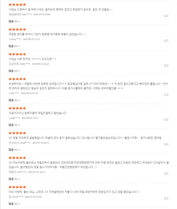 사고없이 안전하게 운행하시다가 웃으며 반납해주시고 가실때 그렇게 기분이 뿌듯하지 않을수가 없습니다.